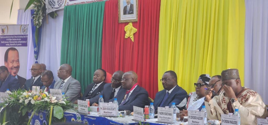 La cérémonie des vœux du Nouvel An du Ministre d’État, Ministre de l’Enseignement Supérieur, S.M. Prof. Jacques FAME NDONGO, s’est tenu ce vendredi 30 janvier 2026, à 700 Amphithéâtre de la FMBS, Université de Yaoundé I. Cet événement solennel s’est déroulé en présence de hautes autorités de la communauté universitaire nationale et internationale au Cameroun. La délégation de l’Université de Yaoundé I était conduite par le Président du Conseil d’Administration, Prof. Maurice TCHUENTE.